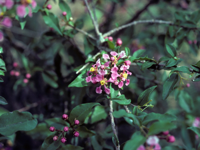 Our backyard is predominantly shady with several, sometimes puzzling, microclimates. A few weeks ago, I spotted this plant with charming pink flowers and dark puckered leaves at the Lady Bird Johnson Wildflower Center’s fall plant sale. The dwarf variety grows to about 2–4 feet and handles dappled shade well. Butterflies, bees, and hummingbirds are attracted to the fragrant blooms in summer, while birds enjoy the bright red fruits that succeed. And, in a mild winter, they remain evergreen!